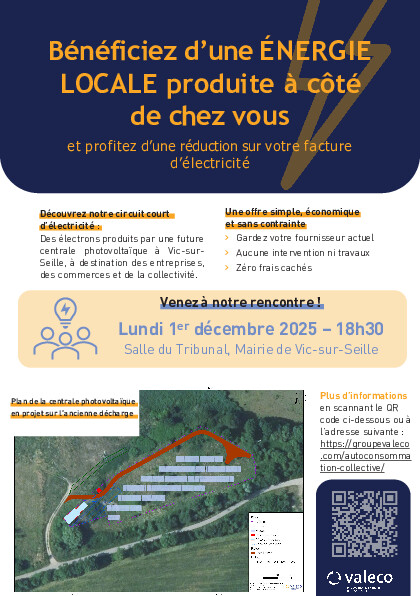 Des électrons produits par une future centrale photovoltaïque à Vic-sur-Seille, à destination des entreprises, des commerces et de la collectivité.